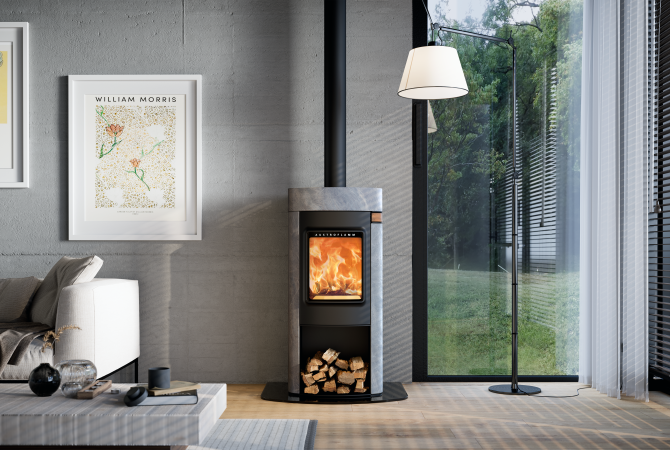 Mit Speckstein-Deckelplatte und Stahl-Seiten verbindet Elisabeth natürliche Wärmespeicherung mit moderner Schlichtheit.