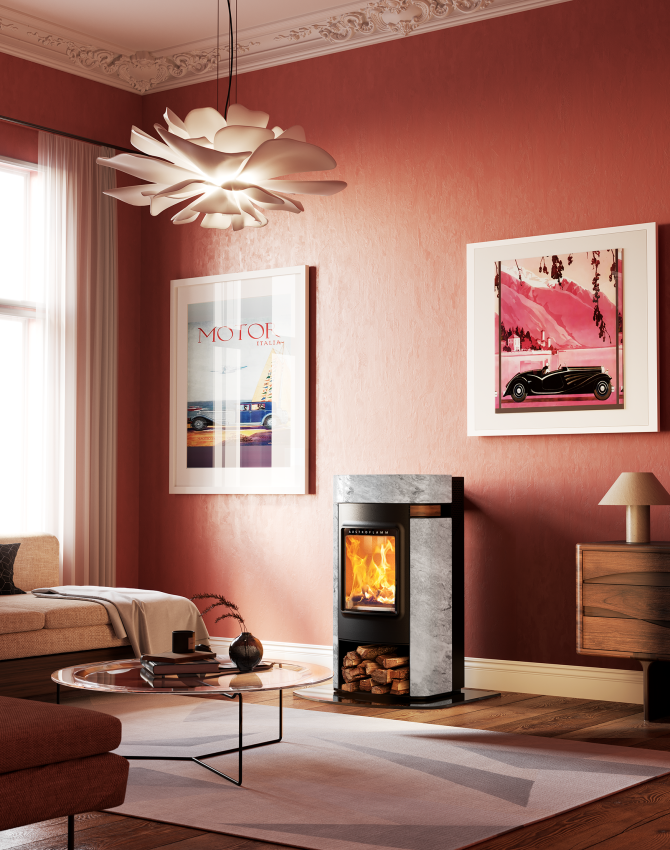 Elise (SV Stahl / DPL marble grey clouds) - Kaminofen von Austroflamm