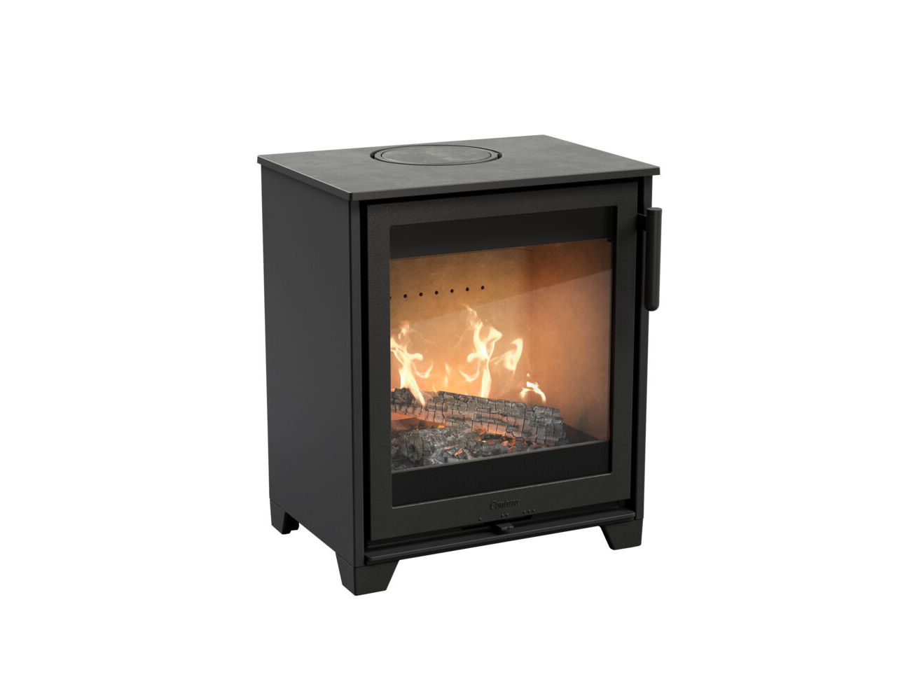 Dieser kompakte und freistehende Kaminofen passt perfekt in Ihren bestehenden Kaminsims und ermöglicht es Ihnen, die Wärme und das Licht Ihres Kaminofens weiterhin zu genießen.