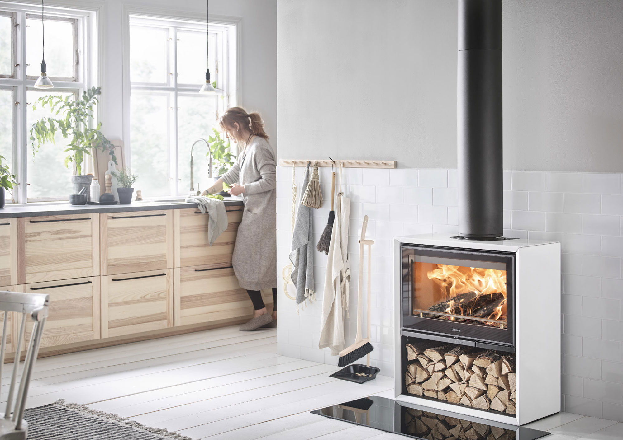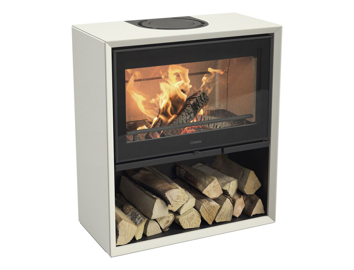Der Contura 310G ist in einem klassischen Schwarz oder einem reinen Weiß verfügbar, was dem Nutzer die Möglichkeit gibt, den Kaminofen perfekt auf den persönlichen Einrichtungsstil abzustimmen. Die Option, den Kaminofen mit einem speziell dafür entworfenen, freistehenden Holzaufbewahrungselement zu ergänzen, bietet nicht nur praktischen Nutzen, sondern trägt auch zum ästhetischen Gesamtbild bei. Diese Kombination verleiht dem Raum ein kohärentes und wohlorganisiertes Ambiente.
