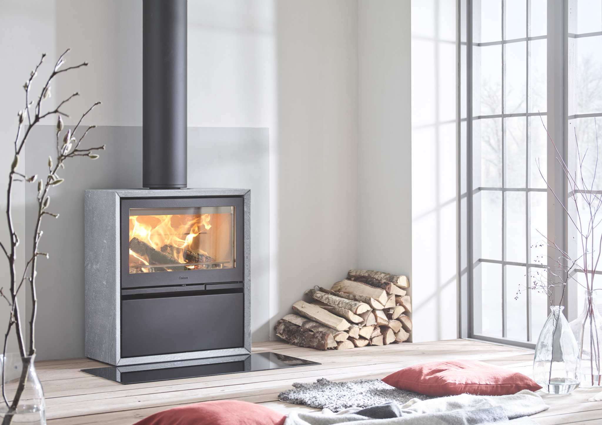 Die spezielle Struktur des Specksteins ermöglicht es ihm, die Wärme über einen langen Zeitraum aufzunehmen und diese dann langsam und gleichmäßig an den Raum abzugeben. Dies führt zu einer angenehmen Raumtemperatur auch Stunden nach dem Erlöschen des Feuers. Der Contura 320T ist somit nicht nur ein effizienter Wärmespender, sondern auch ein Energieeffizienz förderndes Element in Ihrem Zuhause.